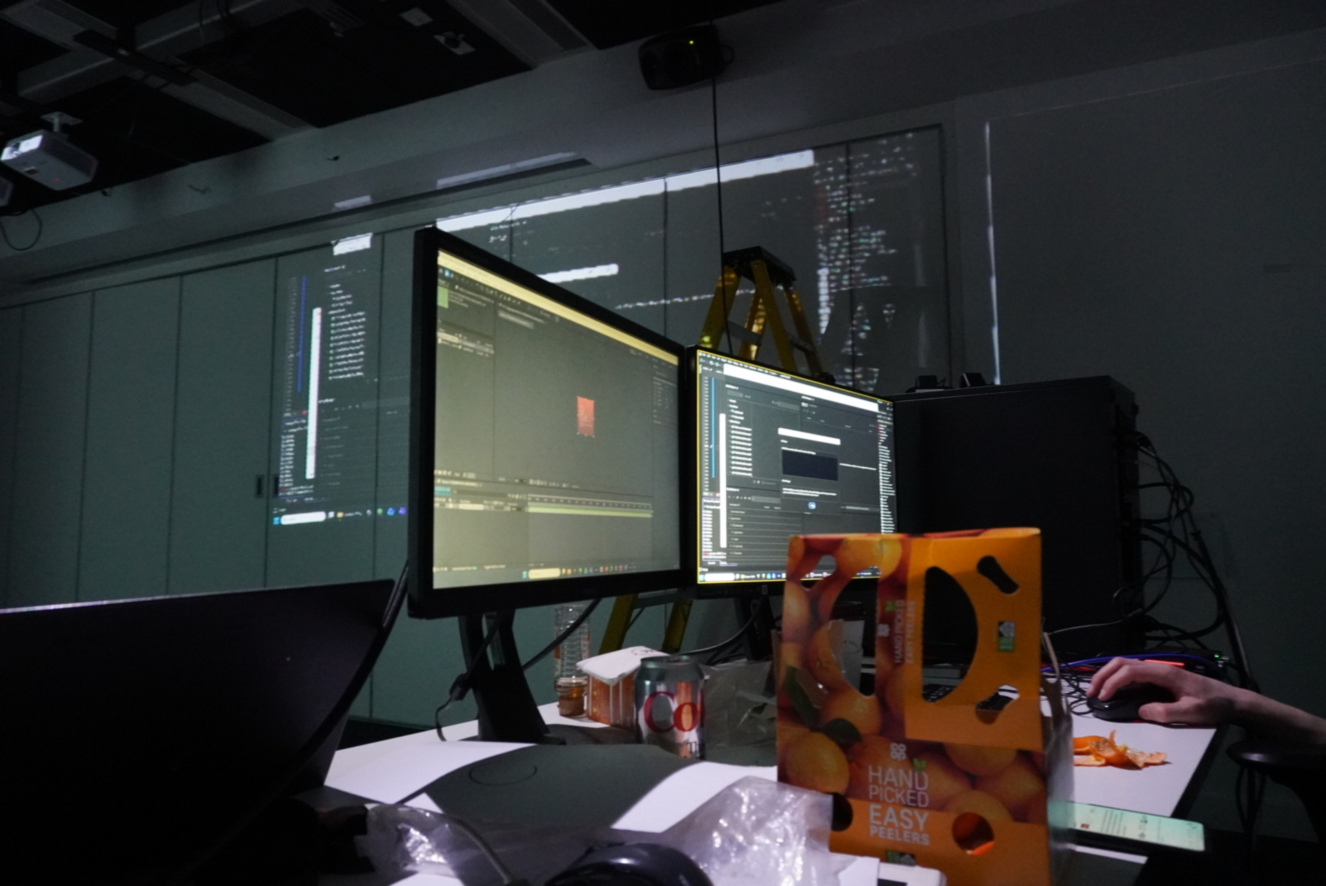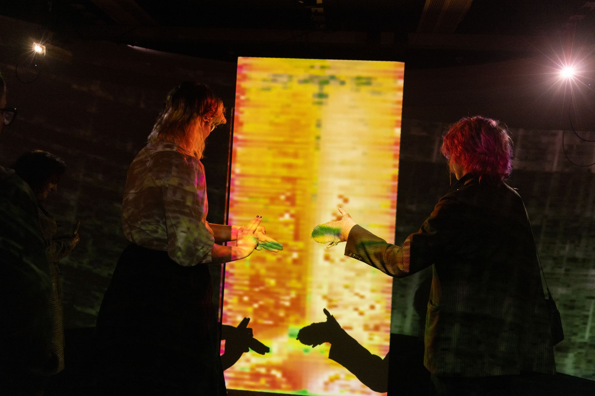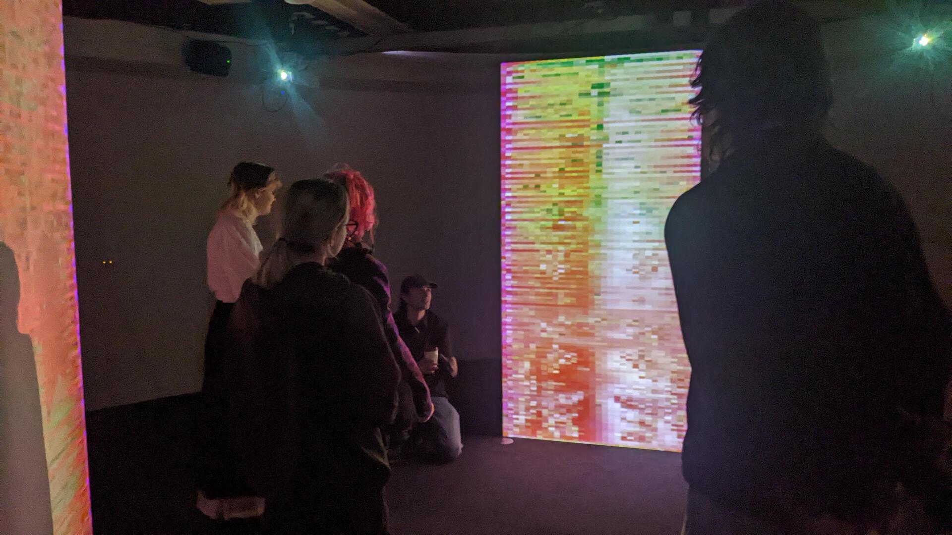 Autonomous processes translate person-driven interaction into system response. Within an auditory automated data feedback loop, human presence, monitored through shadow, triggers visual shifts in the pixelated colour and movement. Participants become unauthorised authors of the work, their actions absorbed and reinterpreted by a system whose logic remains partially obscured. Questions of control and agency remain unresolved. The exhibition comprises three freestanding obelisks, each presenting projection-mapped, pixel-based visuals. Operating as interconnected channels, each structure responds to its own distinct soundscape.