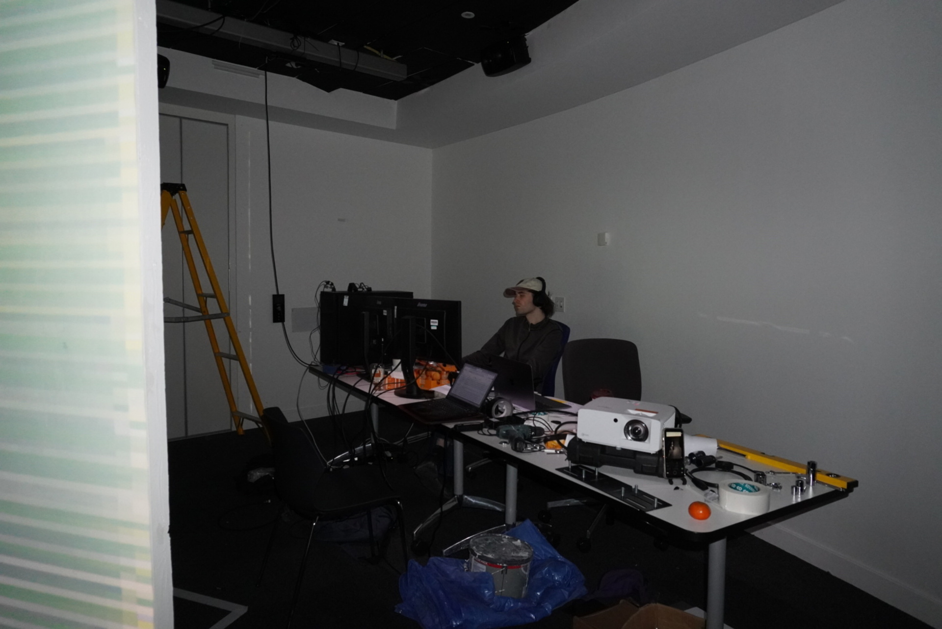 These soundscapes, composed of subtle, near-indistinguishable tones, act as an automated, generative force, delicately shaping the visual output in real time. Layered together, they form a baseline cognition of the system, ready to be disrupted by human presence. The translation from sound to image remains unstable and unpredictable, creating a delicate balance between machine-driven processes and audience interaction.