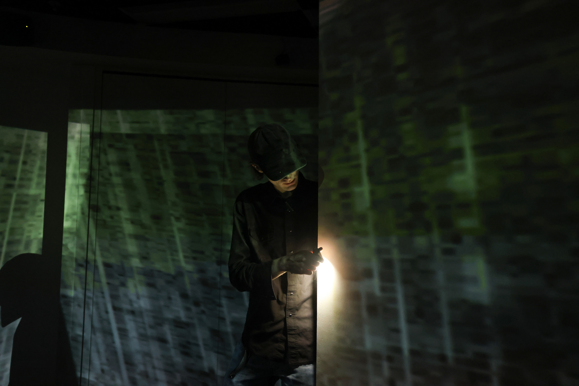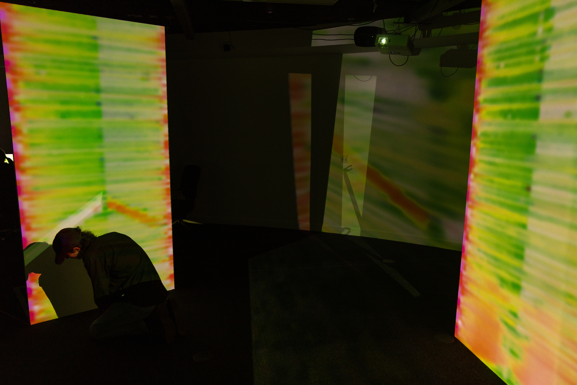 Threshold Systems is an immersive installation exploring the transient and evolving relationship between art and technology, foregrounding investigative technical processes. It examines moments of interaction and disruption as thresholds for change within a responsive system. The viewer’s presence activates the work, positioning them not as observer but as subject, immersed in light and leaving a digital imprint. The installation exposes a shifting boundary between the individual and the system itself.